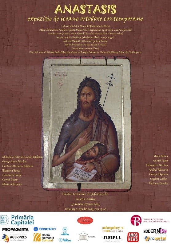 La galeria Cuhnie, publicul este invitat să viziteze cea de-a treia ediție a expoziției de icoane ortodoxe contemporane- ANASTASIS. În cadrul expoziției pot fi admirate icoane realizate în atelierele mănăstirilor din țara noastră dar și din Sfântul Munte Athos. Printre atelierele de lucru participante se numără cele de la mănăstirile Bistrița de Vâlcea, Diaconești, Vatoped și Xenofont.