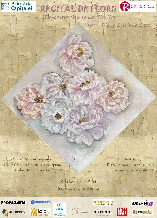 Alături de Mihaela Stanciu, prim-solistă a Operei Naţionale Bucureşti, mezzosoprana Antonia Cosmina Stancu, pianista Teodora Țepeș, soprana Diana Loredana Lazăr și soprana Saviana Rusu, publicul este invitat să participe sâmbătă, 08 aprilie 2023, la recitalul extraordinar vocal-instrumental dedicat Sărbătorii Floriilor. În cadrul recitalului vor putea fi admirate lucrările din expoziția Simfonia Florilor, autor Diana Loredana Lazăr. Evenimentul va începe la ora 16.00.