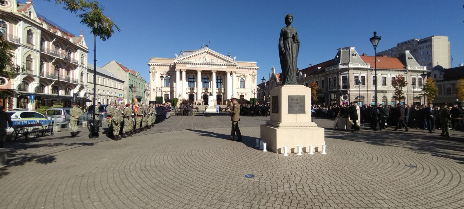 /0 Comments/in Prezentări, Stiri/by Patrick MatisRegina Maria a României, de la a cărei naștere s-au împlinit 150 de ani, a fost omagiată și interpretată de o actriță profesionistă miercuri, 29 octombrie, în Piața Regelui Ferdinand din Oradea, la statuia care o reprezintă. Evenimentul a fost completat de o ceremonie militară, o ceremonie religioasă, o reconstituire istorică, dar și un program folcloric și depuneri de buchete de flori.