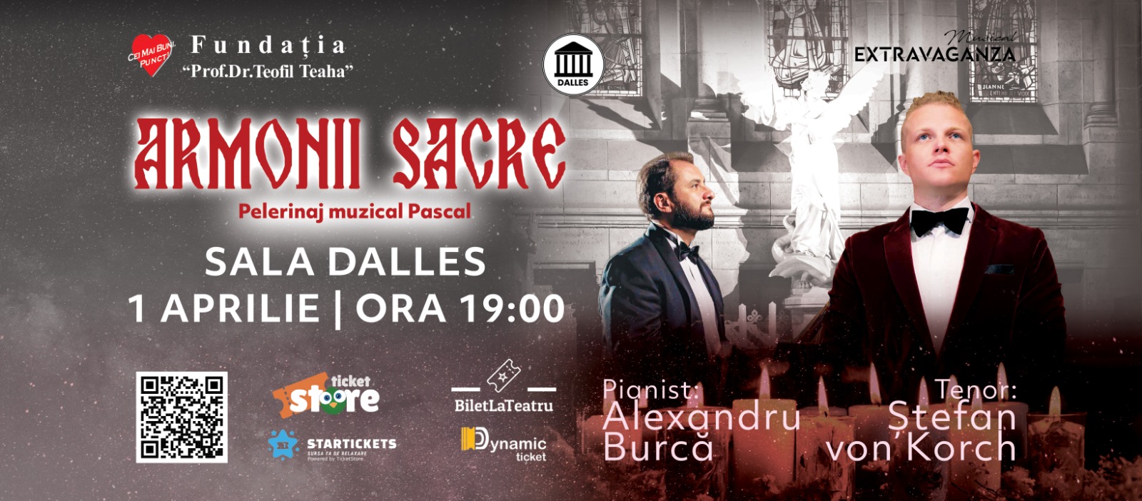 Pelerinaj muzical pascal, prin „Armonii Sacre”, din mise şi oratorii celebre. Prin interpretări înălţătoare şi pline de emoţie, concertul va aduce lumină, speranță și serenitate în suflete, reflectând muzical semnificația profundă a Paștelui. Secvenţe din lucrări de o bogăție spirituală şi muzicală extraordinară – „Ave Maria”, „Panis Angelicus”, piese de muzică cultă specifice care îndeamnă la contemplare şi smerenie. Spectacolul va fi o călătorie spirituală şi muzicală către esenţa sărbătorii Pascale.