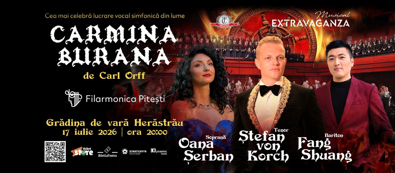Carmina Burana – cea mai celebră creaţie vocal simfonică scrisă vreodată – cunoscută şi drept lucrarea ce prin tradiţie, închide şi deschide stagiunile filarmonicilor din lumea întreagă, va fi în pusă în scenă în premieră în aer liber în Bucureşti la Grădina de Vară Herăstrău pe 17 iulie 2026. Pentru iubitorii genului, concertul înseamnă bucuria de a audia cea mai cunoscută cantată din lume, îndelung aşteptată şi aclamată pretutindeni, dar şi prilej de întâlnire cu solistul a cărui voce este adesea considerată inconfundabilă pentru această lucrare: spectacolul îl aduce la rampă pe tenorul Ştefan von Korch, care va interpreta partitura specifică vocii sale din „Carmina Burana” pentru publicul din Grădina Herăstrău după peste 40 de apariţii în această postură pe scene ale filarmonicilor naţionale şi debut sclipitor la Palermo, elogiat în presa din Italia şi România deopotrivă.