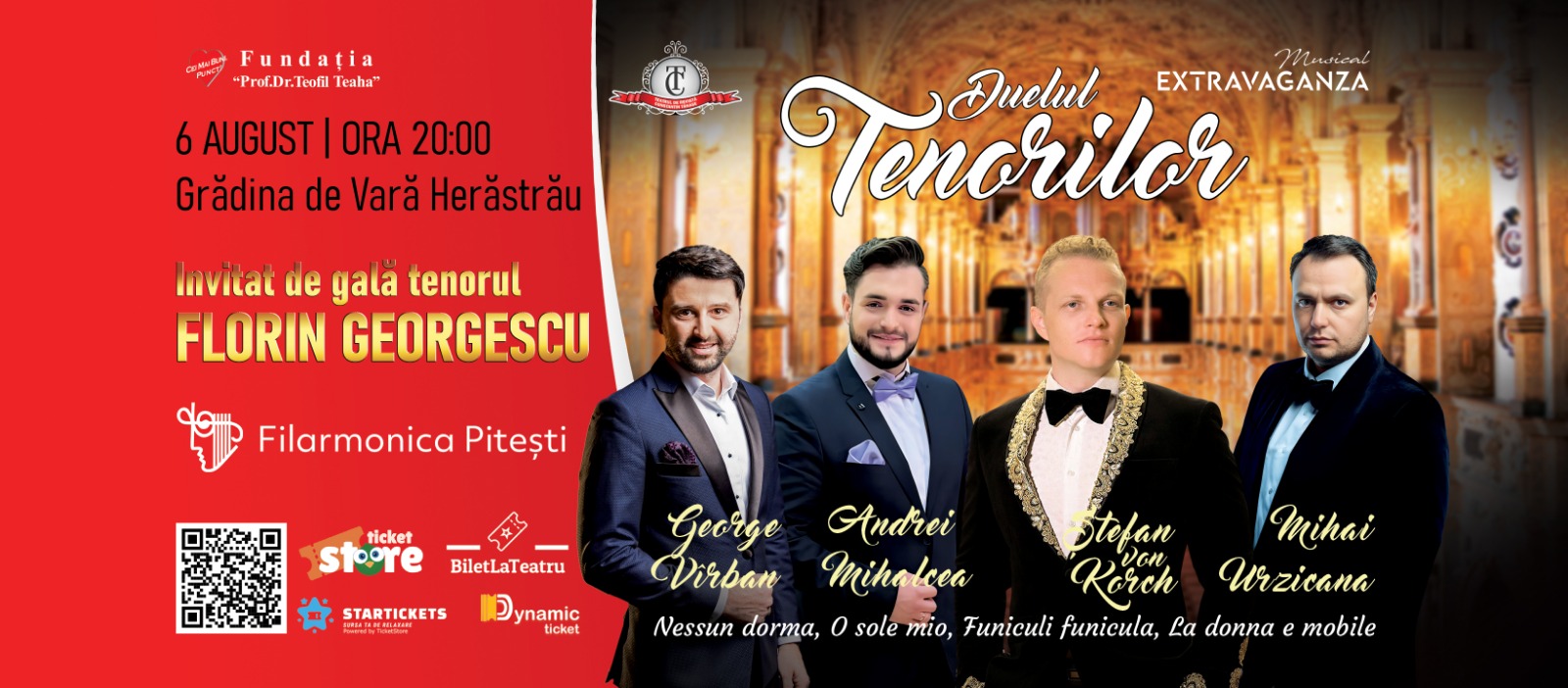 Spectacolul ce aduce anual eleganţa operei şi efervescenţa canzonetelor, aproape de public, în aer liber, va avea loc, la Grădina de Vară Herăstrău, pe 6 august. Voci masculine lirice relevante pentru scena naţională şi internaţională vor încânta spectatorii într-o seară în care vocea vedetă a registrului liric – cea de tenor, va străluci în interpretări pline de pasiune şi virtuozitate. Evenimentul îi va aduce pe scena din Grădina Herăstrău pe 6 august pe Ştefan von Korch, solist gazdă şi invitaţii George Vîrban, Andrei Mihalcea, Mihai Urzicana, dar şi pe legendarul tenor Florin Georgescu.