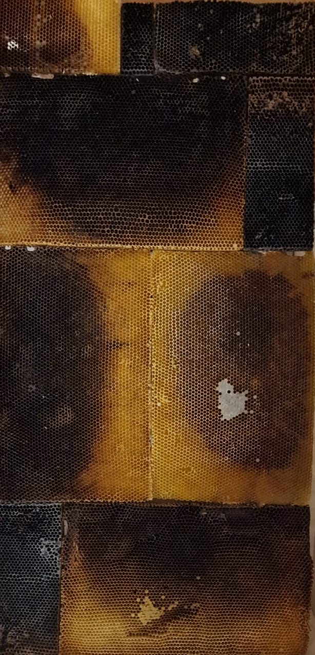 „Mirosul, textura delicată, dar rugoasă, și nuanțele naturale în note particulare ale zecilor de faguri, contrastează cu compozițiile cromatice intense ale picturilor, oferind o experiență vizuală fascinată.”