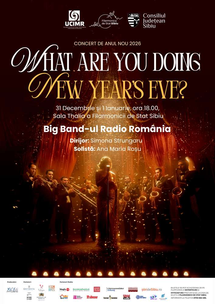 Asociația UCIMR – Uniunea de Creație Interpretativă a Muzicienilor din România – împreună cu Filarmonica de Stat Sibiu anunță programul concertului de Anul Nou de la Sibiu: miercuri, 31 decembrie 2025, orele 18:00, și joi, 1 ianuarie 2026, orele 18:00, la sala Thalia a Filarmonicii de Stat Sibiu.