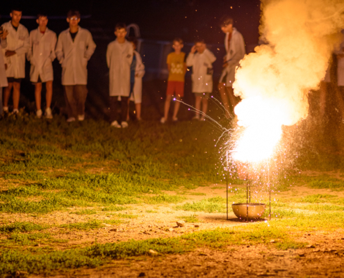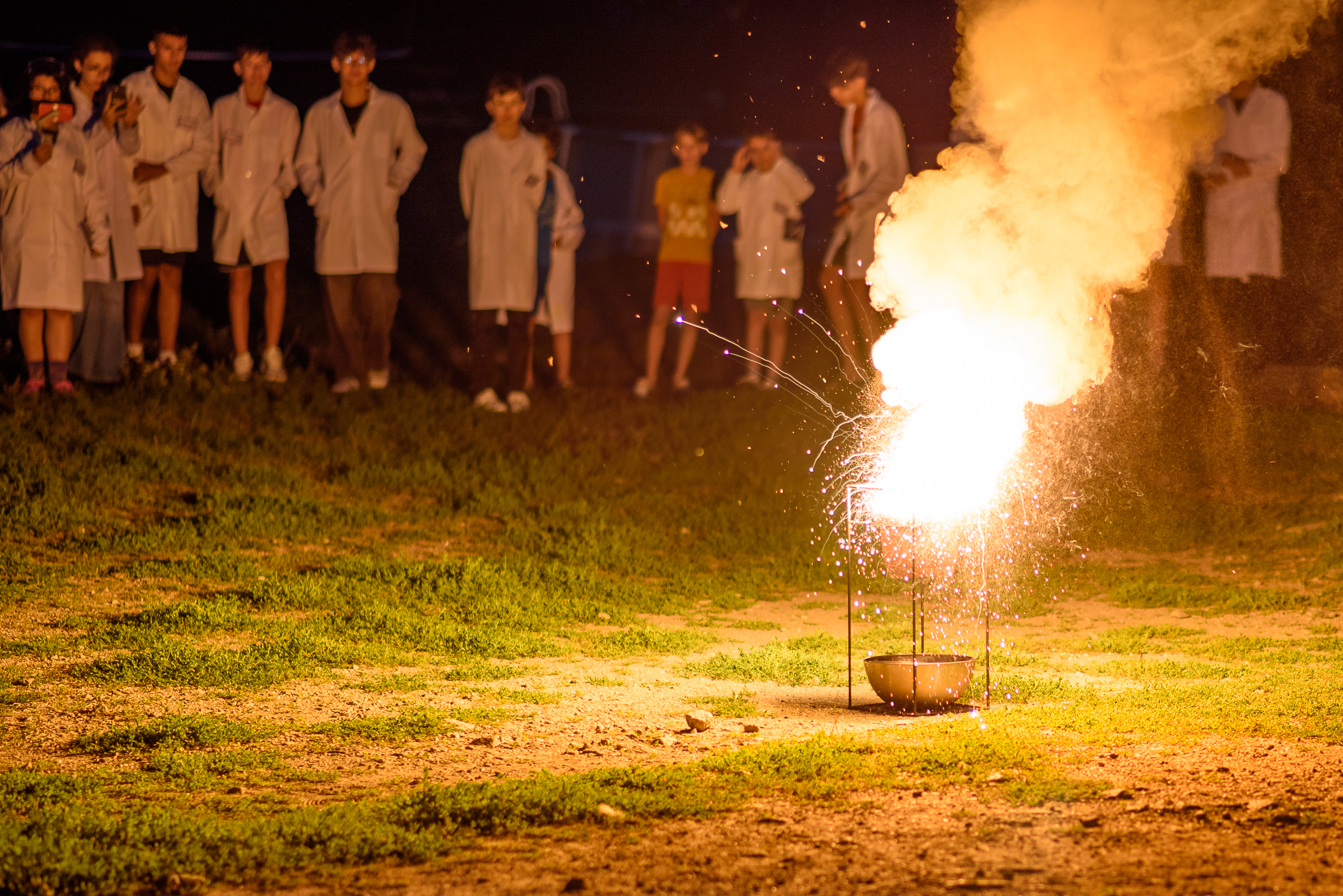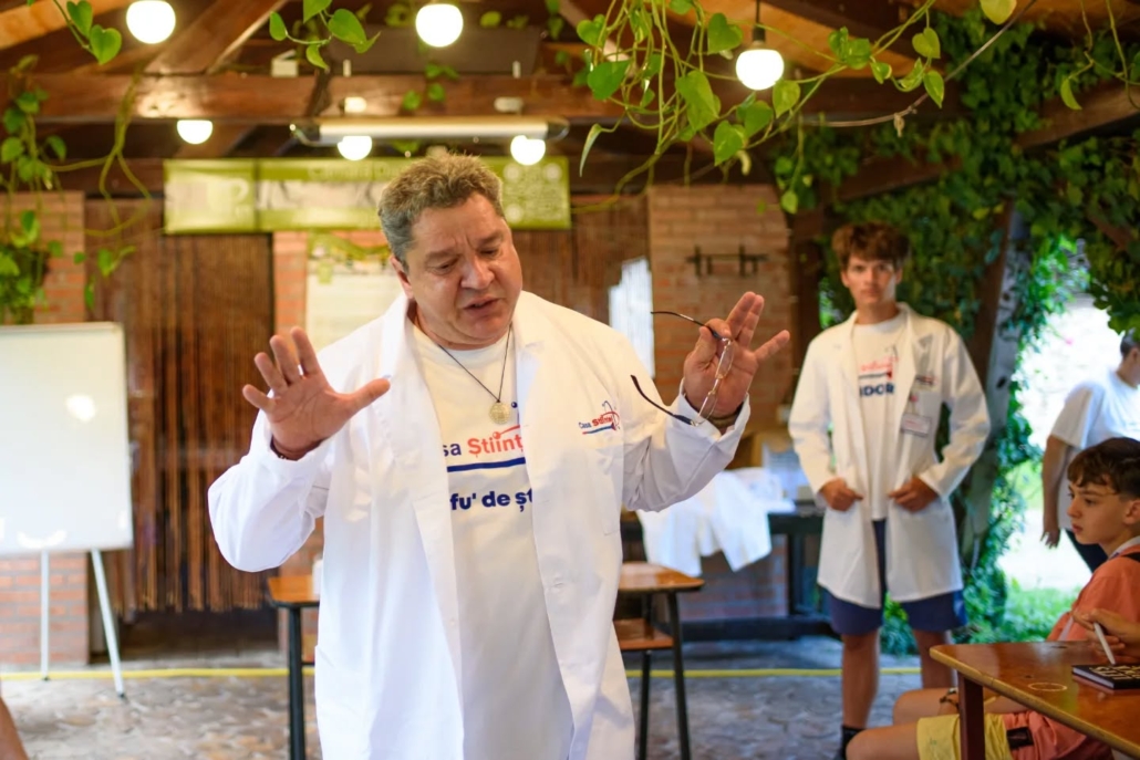 „Chimia, joaca și distracția s-au împletit perfect în această ediție a taberei… Așa cum ne-am obișnuit, activitățile inedite și colectivul unit au făcut ca această experiență să fie extraordinară pentru toate vârstele. Suntem profund încântați să finalizăm încă o tabără reușită! Am mai descoperit o parte din univers alături de voi, oameni de știință în devenire! Abia așteptăm să ne revedem anul viitor, cu și mai multe cunoștințe, curiozități și realizări”, a transmis la final profesorul Tiberiu Stroia, principalul artizan al taberei. Acesta a fost ajutat și de alte cadre didactice dar și de doi tineri asistenți, foști participanți la ediții anterioare a taberei, Ioana (17 ani) și Tudor (16 ani), care au pregătit reactanții pentru reacțiile chimice studiate cu interes de elevi. „Vânătoarea de ‘comori’ a fost activitatea mea preferată fiindcă a împrietenit copiii veniți din diverse colțuri ale țării”, spune Tudor.