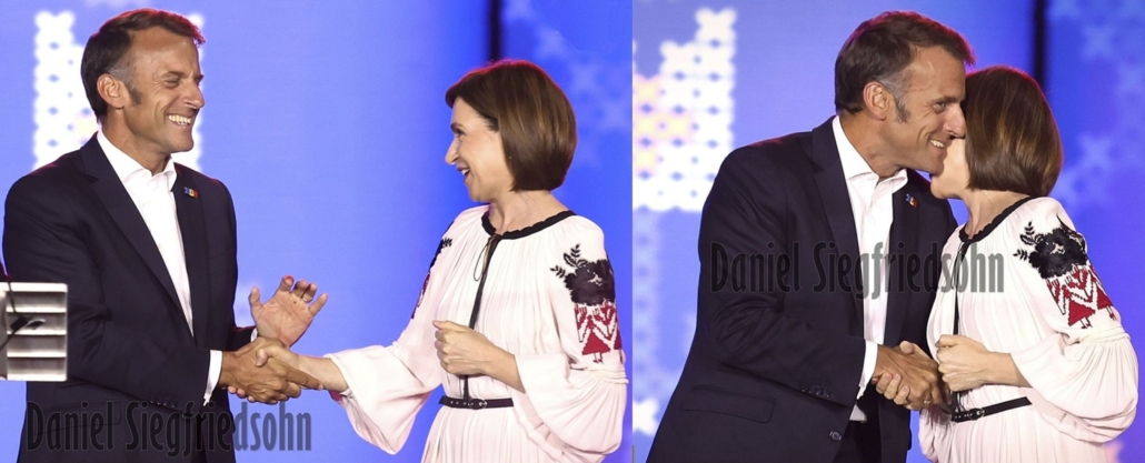 Chișinău sau țarcu r.m. (27 august 2025). Macron autorul loviturii de stat de la București împotriva suveraniștilor, a salutat plin de vervă mulțimea din Piața Marii Adunări Naționale cu „Bună seara, dragi prieteni moldoveni!”. A venit să-i serbeze independența și să-i garanteze statalitea fantomă antiromâncei globaliste Sandu care nu a scos niciun cuvânt despre Unirea cu România, deși cancelarul Merz în discursul său pomenise că Germania sărbătorea deja un an de la reunificare în anul 1991!