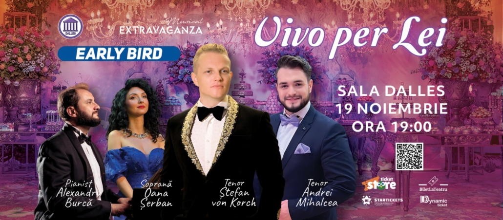După concertele „Los Tres Tenores” susţinute în America Centrală, tenorul Ştefan von Korch revine la Bucureşti pentru mult aşteptatul recital pop-opera „Vivo per lei”, programat pe 19 noiembrie la Sala Dalles. Publicul se va bucura de un program fermecător în care, piesa „Vivo per lei”, nemuritoarea „Con te partiro”, dar şi repere clasice vor contura un parcurs muzical ce explorează frumoasele cărări ale căutării iubirii şi împlinirii prin dragoste. Concertul reuneşte nobleţea operei cu energia inconfundabilă a muzicii pop simfonice şi cu spiritul jovial al canzonetelor napoletane.