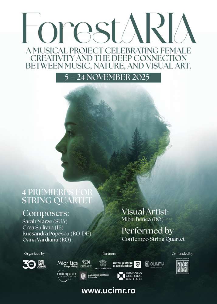 Uniunea de Creație Interpretativă a Muzicienilor din România (UCIMR) anunță lansarea proiectului ForestAria, o serie de concerte multimedia ce îmbină muzica contemporană, arta fotografică și peisaje naturale și culturale pline de expresivitate. Desfășurat între 7 și 24 noiembrie 2025, turneul include cinci concerte susținute în Marea Britanie, România și Irlanda de către renumitul Cvartet ConTempo, ansamblu româno-irlandez cu o carieră internațională de peste trei decenii.