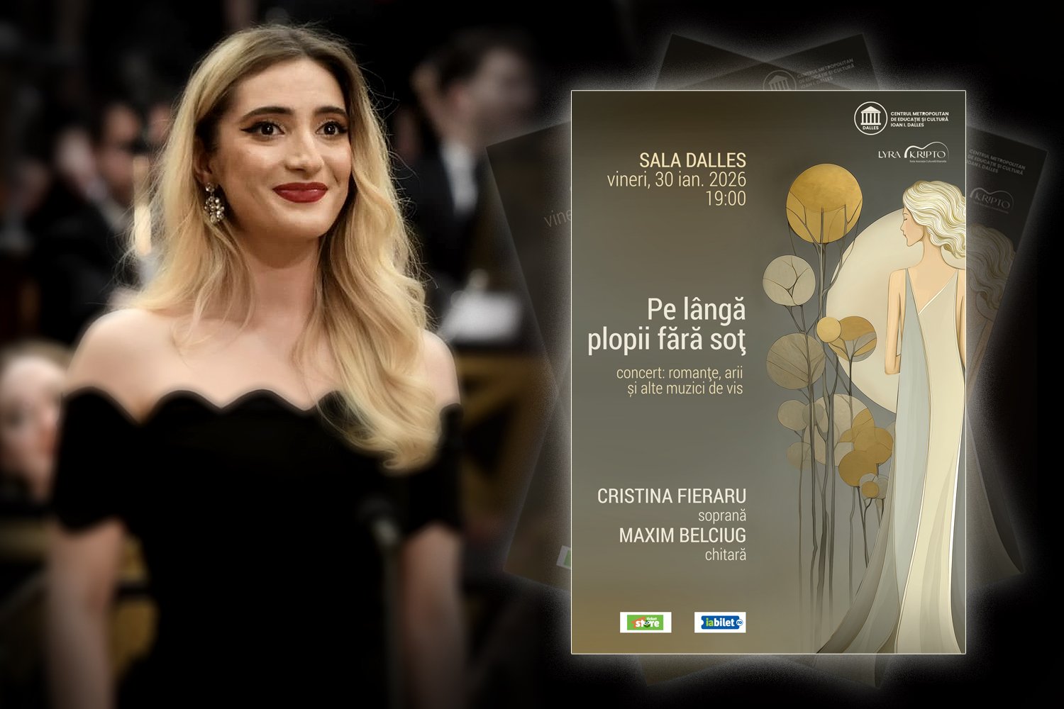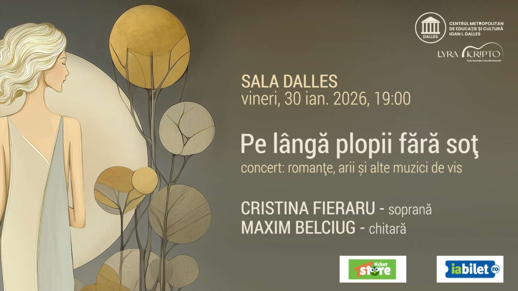 Pe 30 ianuarie 2026, Sala Dalles din București găzduiește un eveniment aparte: senzaționala soprană Cristina Fieraru dă glas pe scenă iubirii în toate formele ei, într-un concert excepțional, intitulat sugestiv „Pe lângă plopii fără soț”. Acompaniată de carismaticul Maxim Belciug, cu chitara sa cât o orchestră, soprana va oferi publicului o seară de emoție și sensibilitate, de dor, de pasiune și de viață, prezentând un program rafinat, care îmbină tandrețea romanțelor cu bogăția expresivă a ariilor de operă și aerul solar al canțonetelor napolitane.