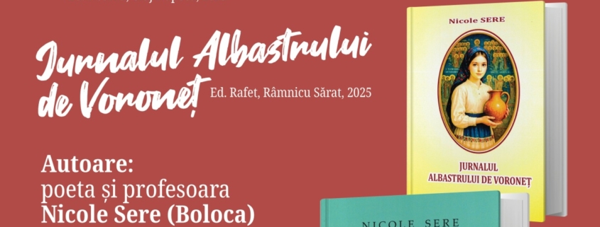 În „Jurnalul albastrului de Voroneț”, publicat la Editura Rafet, Nicole Sere explorează cromatica sacrului și a memoriei culturale, într-o meditație poetică despre frumusețea și fragilitatea lumii. Volumul completează, prin tonul său confesiv și simbolic, universul liric conturat în creațiile anterioare ale autoarei.