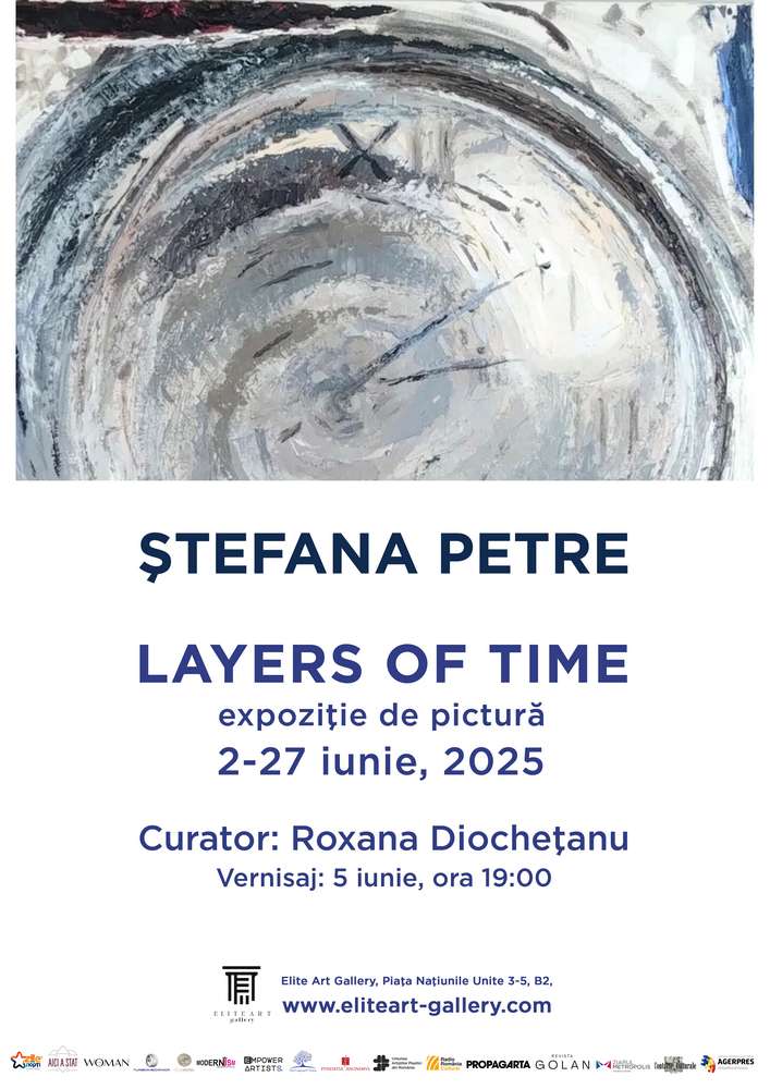 În perioada 2-27 iunie 2025, Elite Art Gallery găzduiește expoziția Layers of Time, a artistei Ștefana Petre. Expoziția este curatoriată de Roxana Diochețanu, iar vernisajul acesteia va avea loc pe data de 5 iunie, începând cu ora 19:00 și va fi completat de un moment muzical live, care propune un dialog sonor subtil cu lucrările expuse.