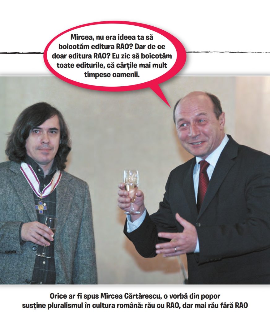 Și vă mai mirați că țara se duce de râpă? Când flașnetele Sistemului vă spun „la stânga!”, răspunsul firesc e să o luați spre dreapta, sau măcar să stați pe loc și să gândiți. Dar voi, hipnotizați de strălucirea falsă a unui impostor cu față de poet, executați comenzi ca niște roboței…