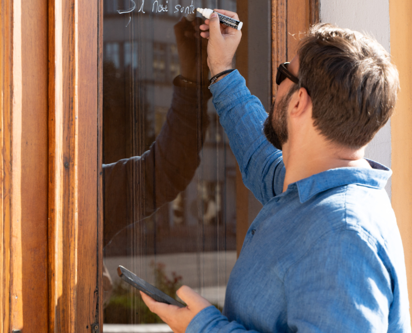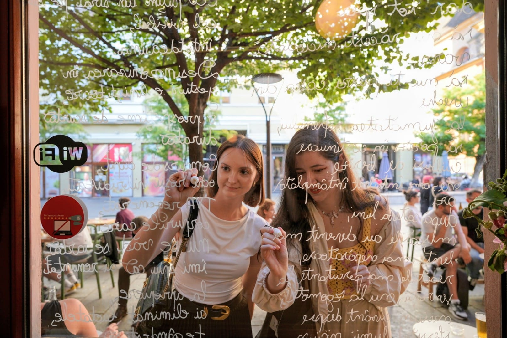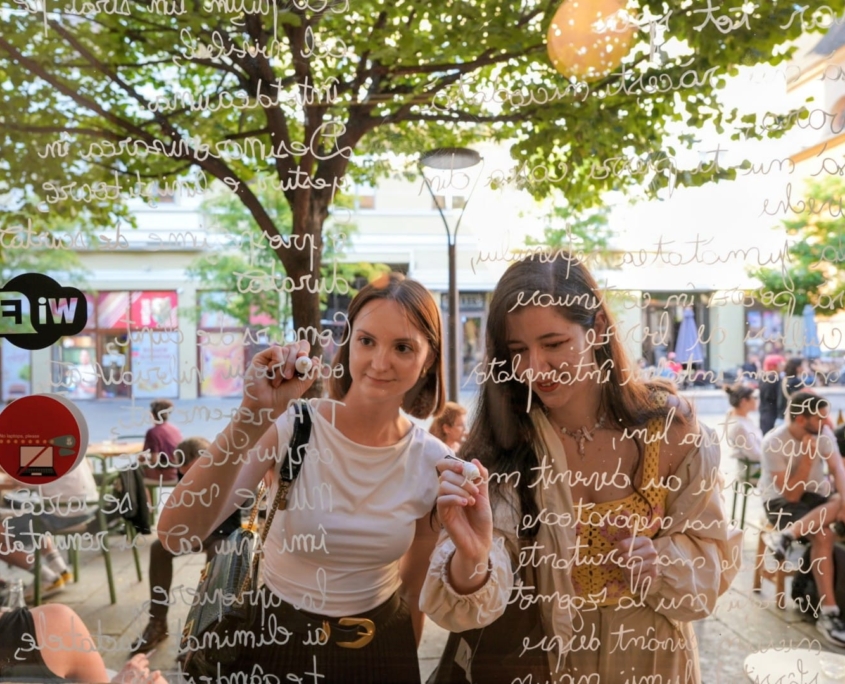 Invitații FICT – scriitori, artiști, oameni de cultură și membri ai comunității – au acceptat provocarea și au scris poezii pe geamuri, în spații care variază de la cafenele și librării, până la instituții culturale și magazine.