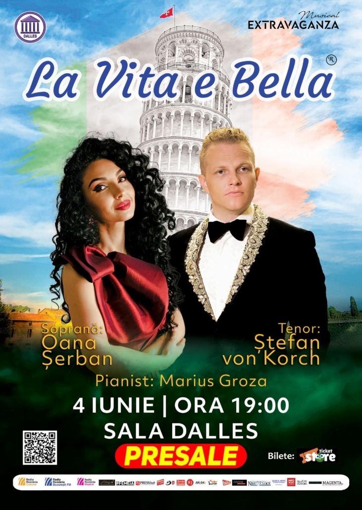Recitalul „La Vita é bella”, este programat pe 4 iunie la Sala Dalles, pentru a celebra prin muzică Ziua Naţională a Italiei (2 iunie). Iar tenorul Ştefan von Korch punctează: